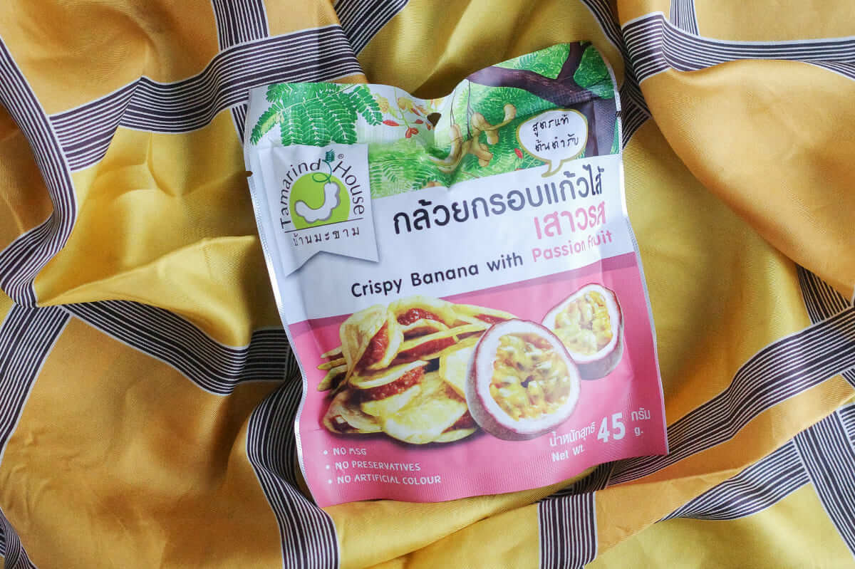 タイのお土産の定番「タマリンドハウス バナナチップスサンド パッションフルーツ 45g」226円