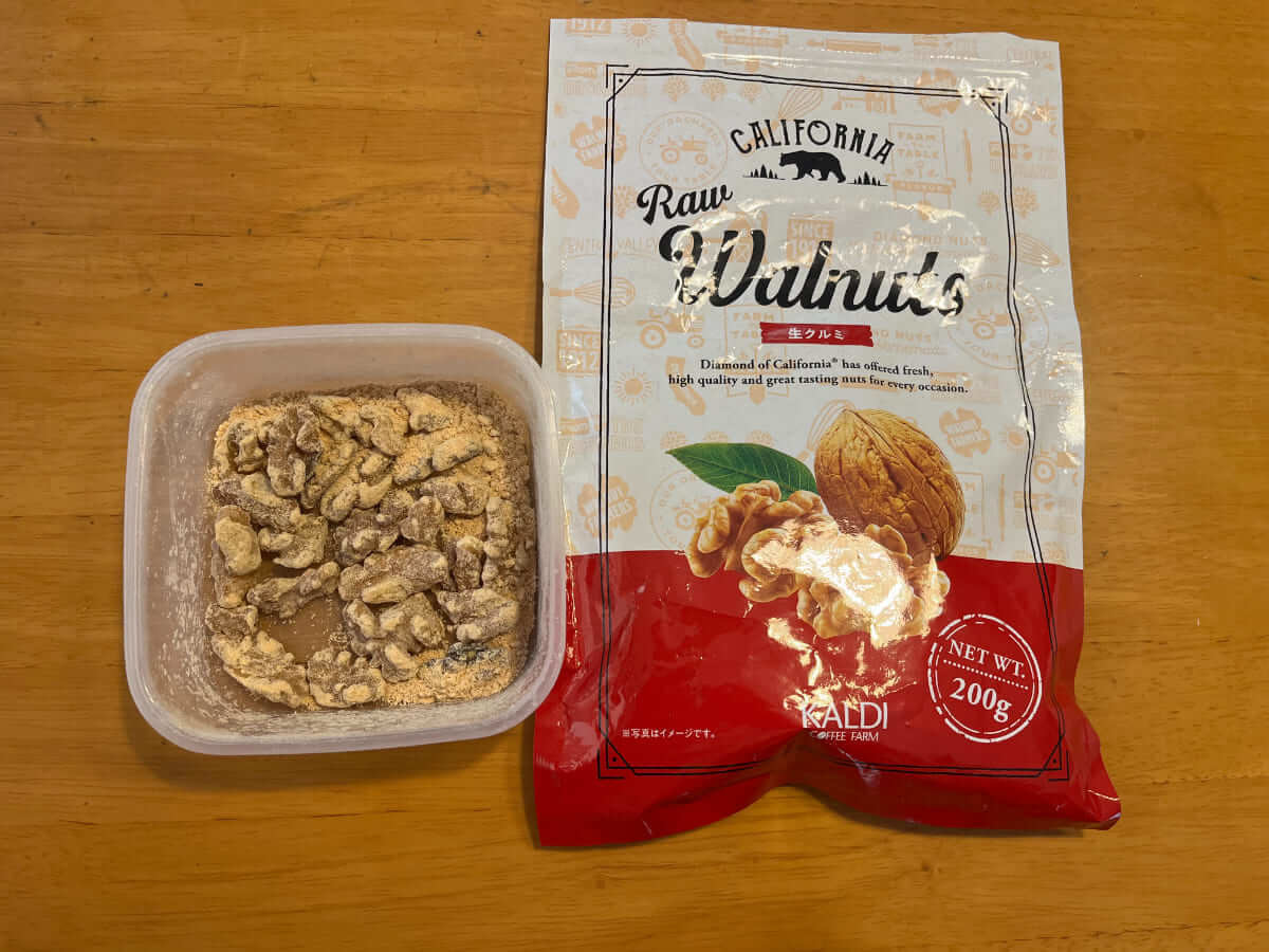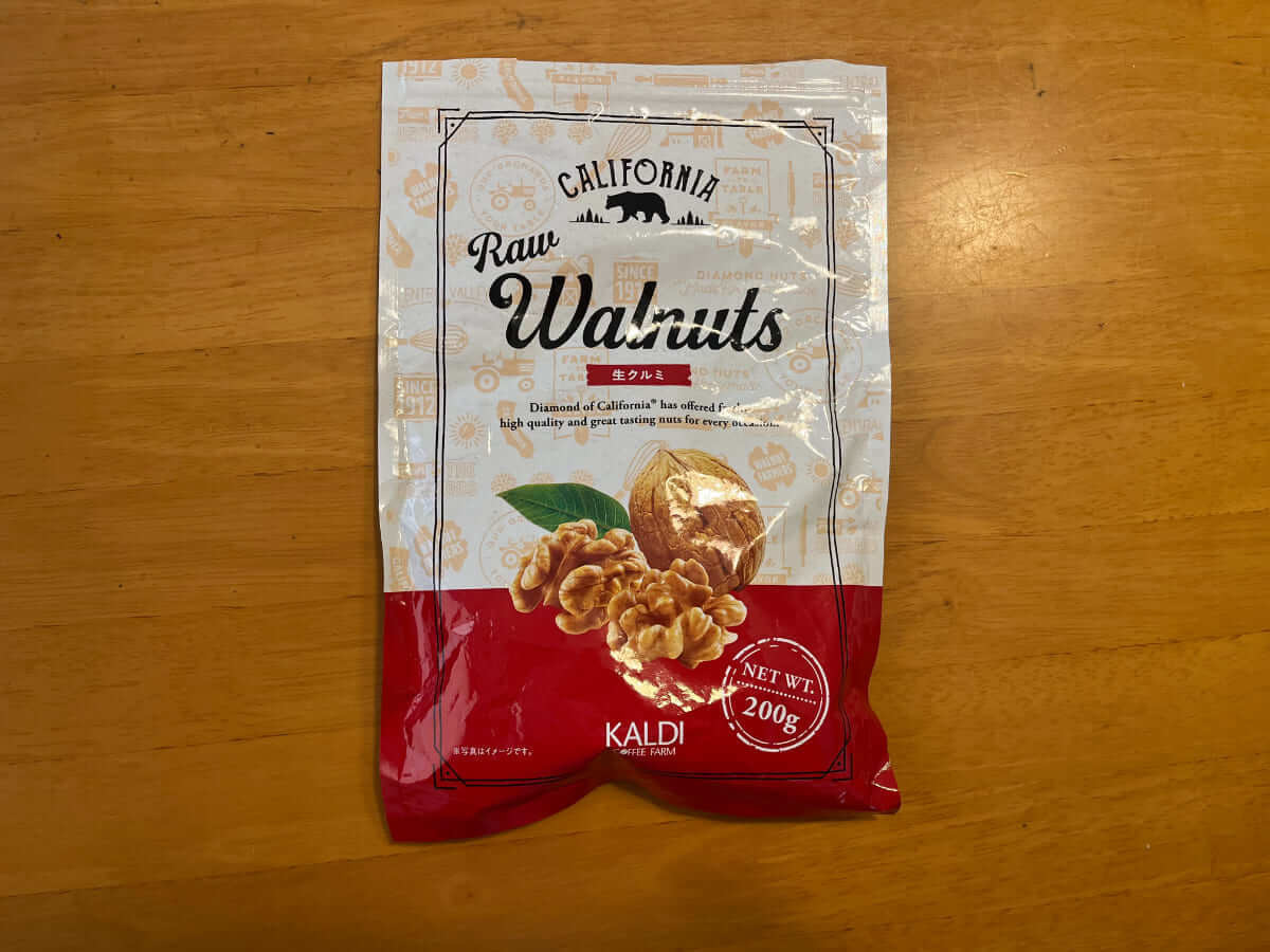 カルディに行くたびに必ずカゴに入れるのが、この「生クルミ」です。しっとり柔らかくクリーミーな味わいは、生ならでは。