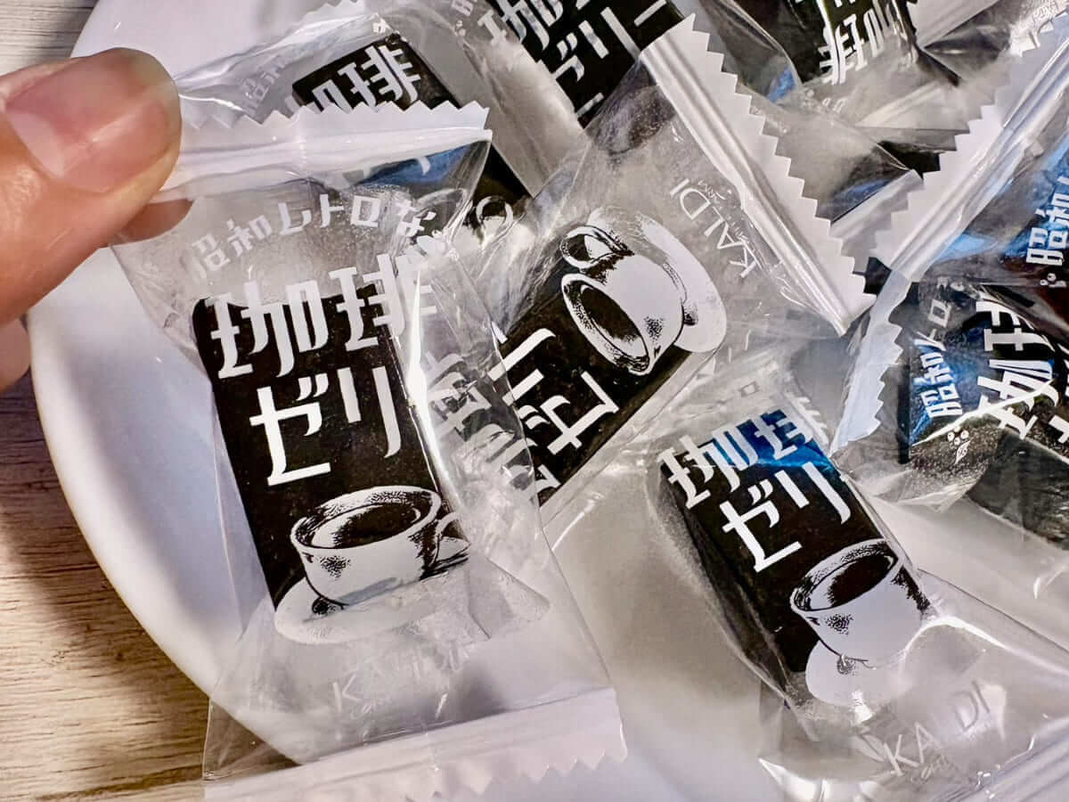 まず紹介するのは、どこか懐かしさを感じる「昭和レトロなコーヒーゼリー」です。中には、オブラートに包まれたもっちり食感のコーヒーゼリーが入っています。