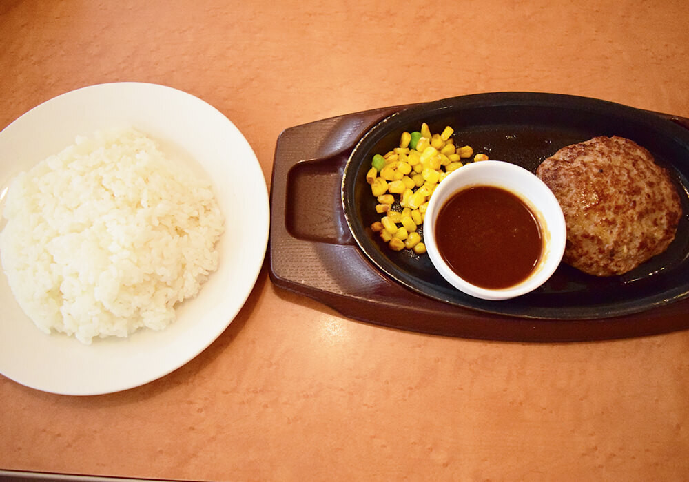 私が利用した店舗では「チーズINハンバーグランチ(ライス付き)※ライス大盛り無料・日替わりスープ付き(おかわり自由)」769円(税込)です。