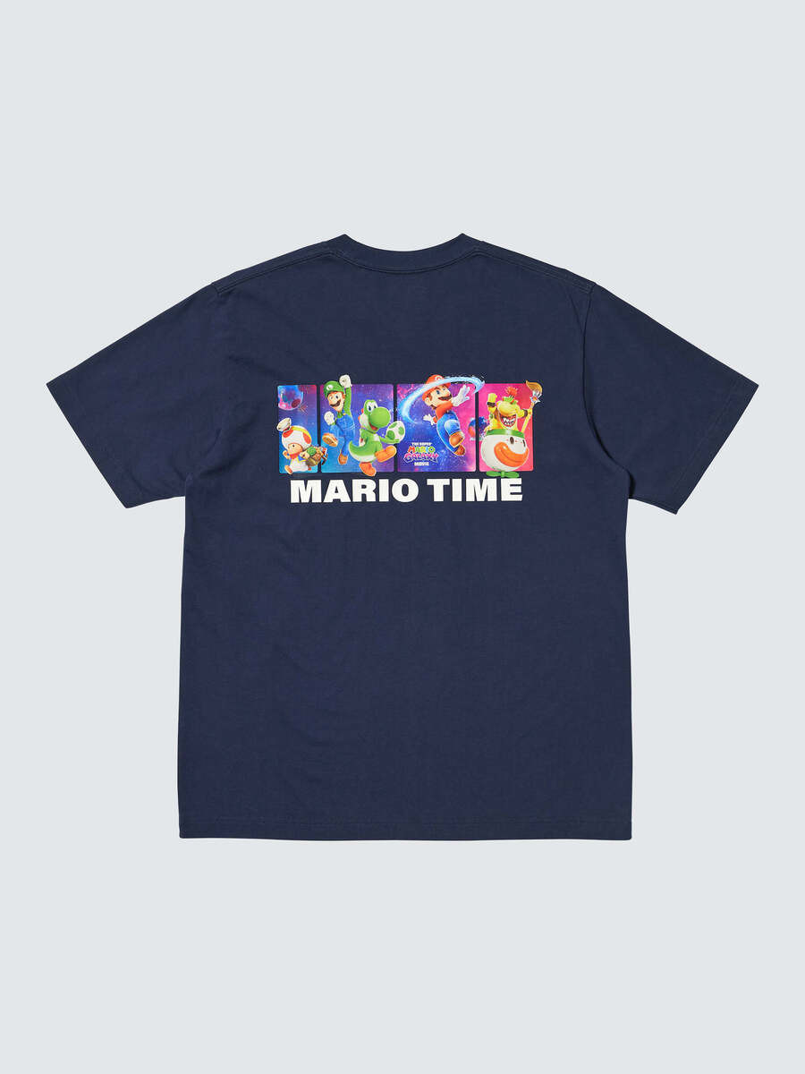 『ザ・スーパーマリオギャラクシー・ムービー』に登場するキャラクターたちを集めた、存在感のあるデザイン。ギャラクシーの世界観の中で活躍するマリオや仲間たちをバランスよく配置し、映画の楽しさを1枚で表現しました。大人の商品とリンクした着こなしも楽しめるUTです。