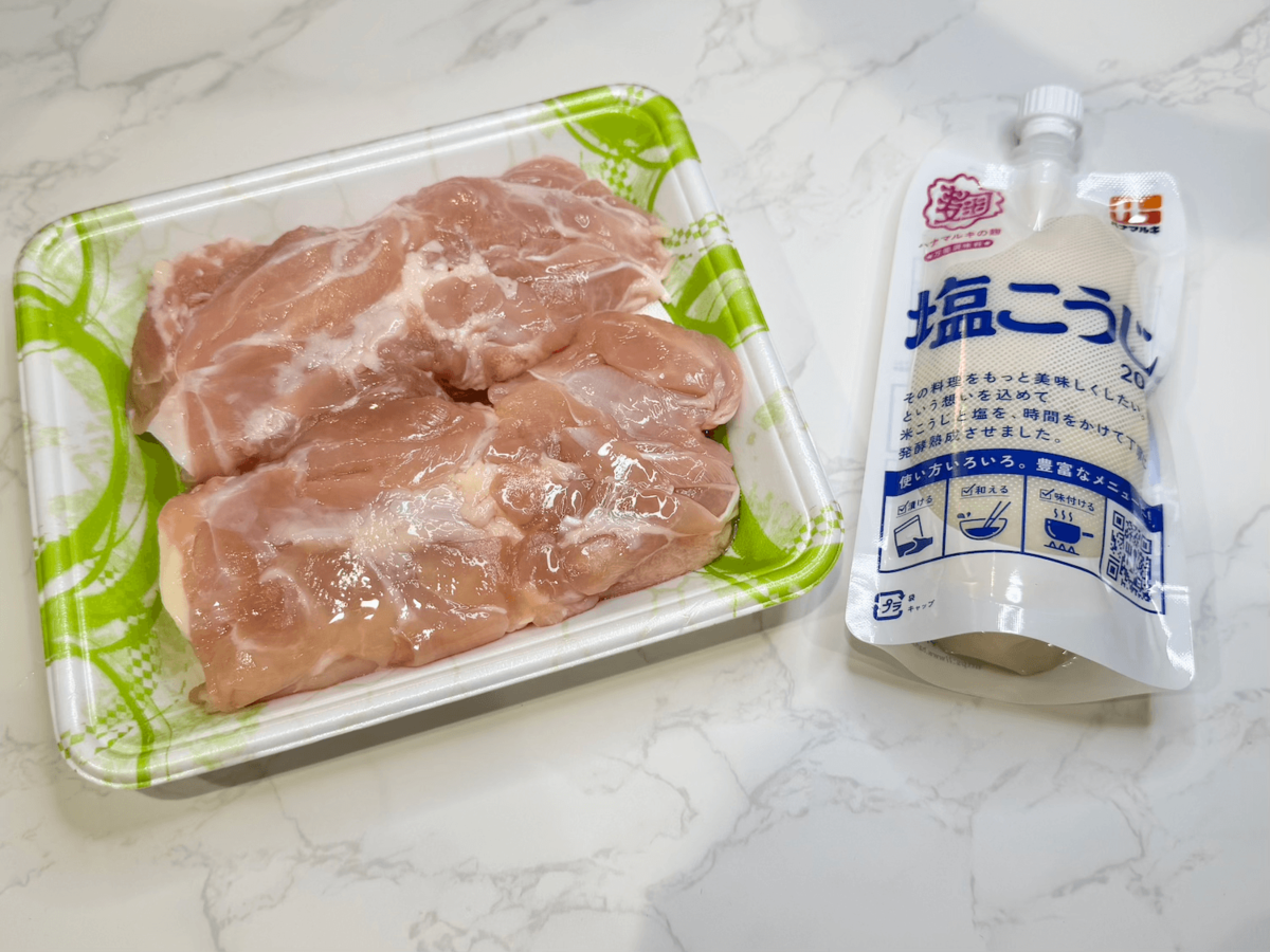 塩麹を鶏肉に揉み込んで1〜2時間置くだけで、鶏肉がレストラン級にやわらかくなります。