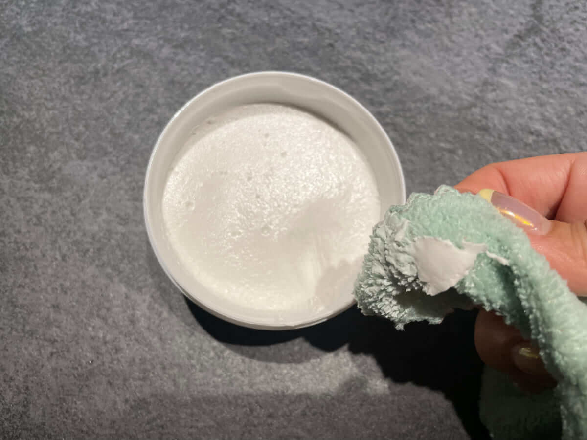 使い方は簡単で、スポンジまたは柔らかい布に多目的クレンザーを付け、汚れを落としたい部分を磨きます。