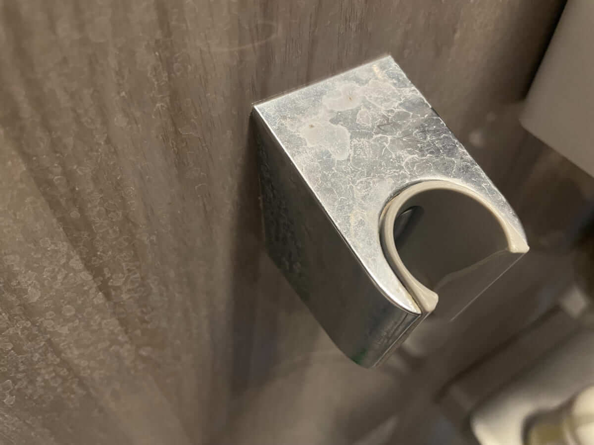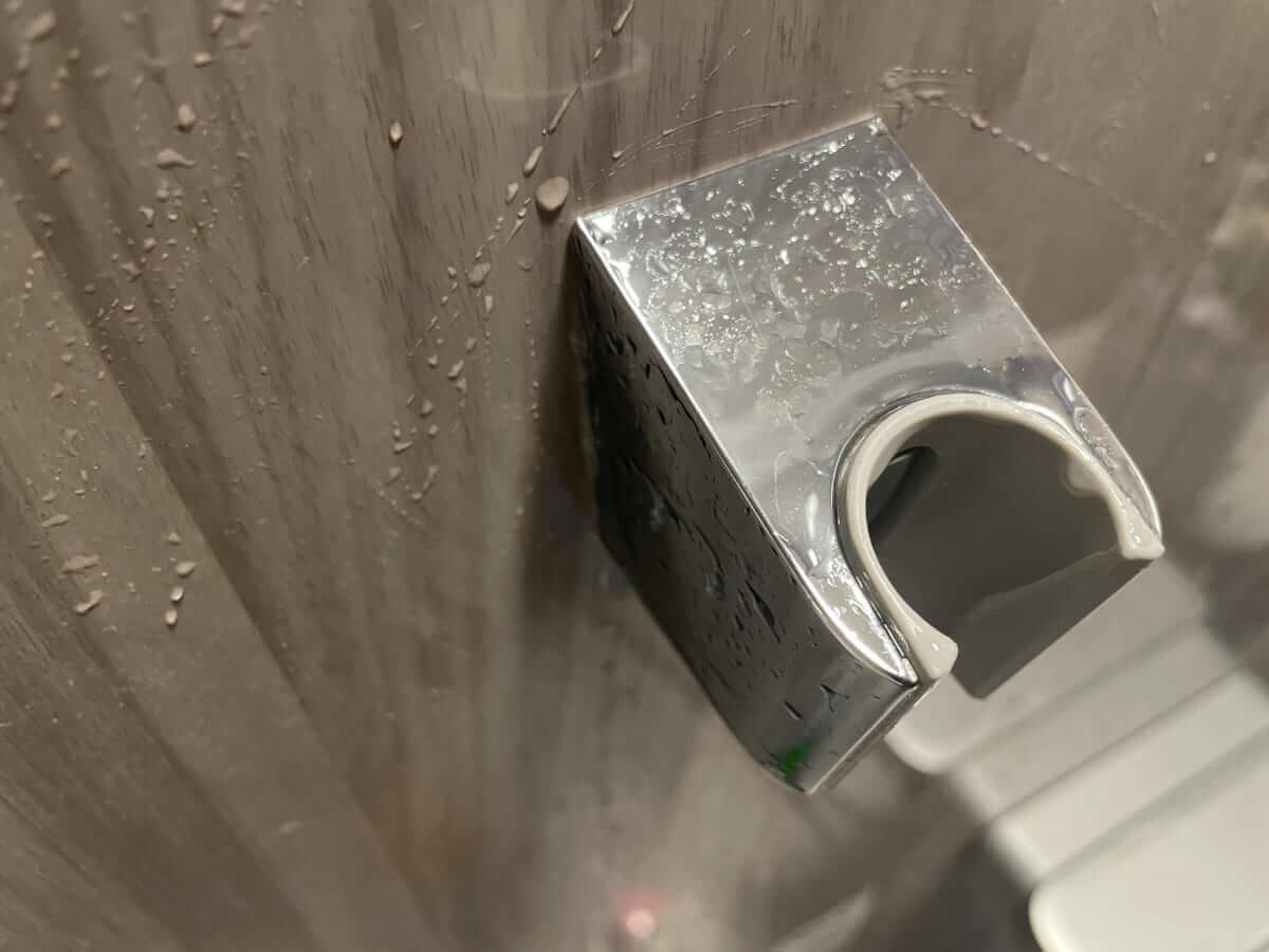最後に掃除用クロスなどで拭き取って完了です。実際に、自宅のお風呂の水垢を掃除してみました。