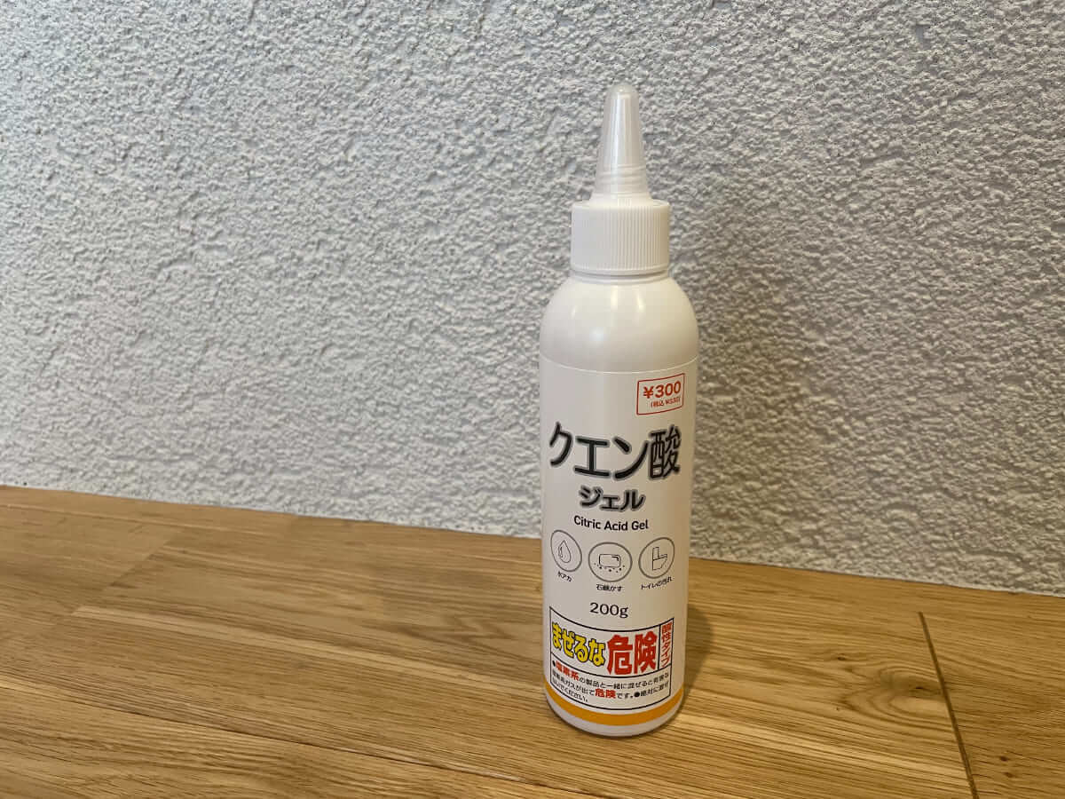 ダイソーのクエン酸ジェルは、酸の力で水垢を分解するクエン酸を配合したジェルです。