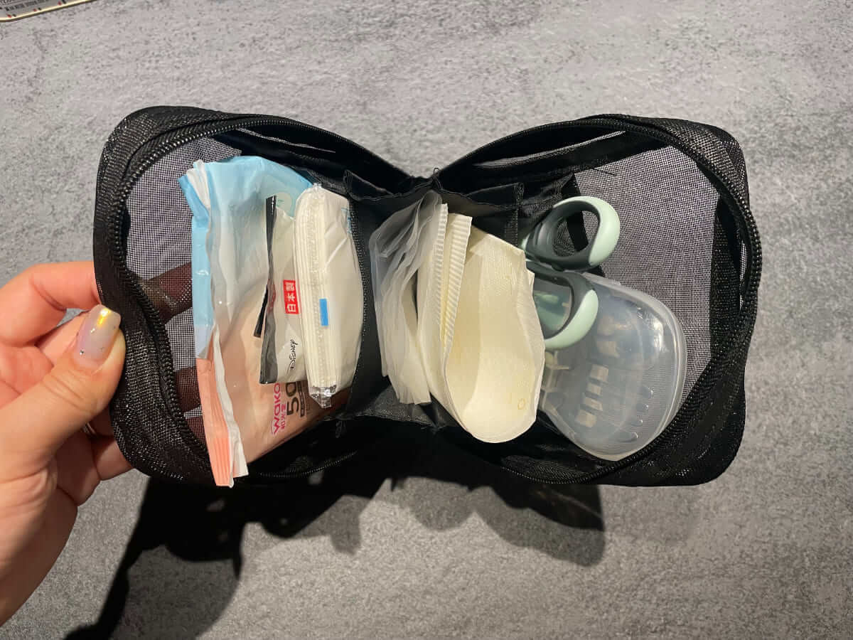 そんな悩みを解消してくれるのが、このポーチ。もともとはメイクポーチとして販売されている商品ですが、子連れのおでかけに大活躍します。