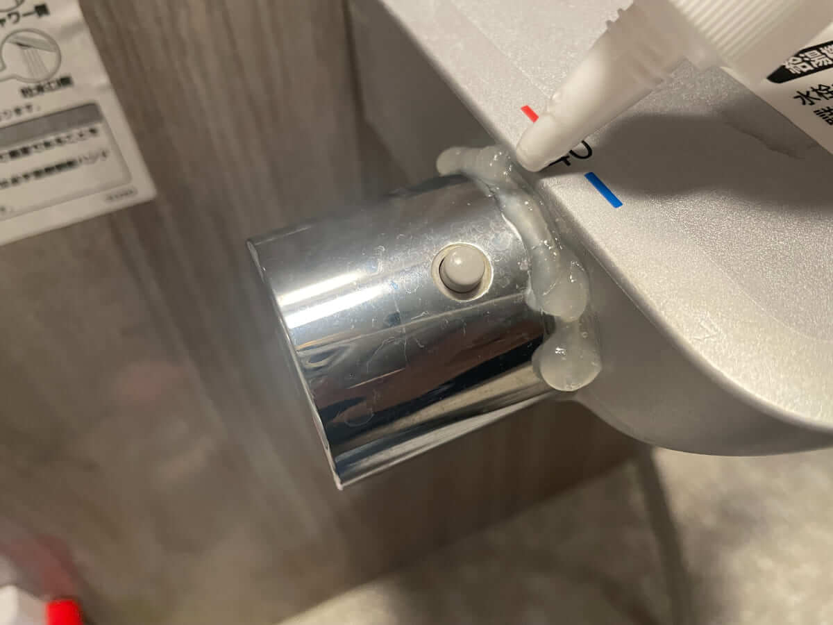 また、ノズルがかなり細いので、蛇口の隙間や浴槽扉の角などにピンポイントに塗布することができます。
