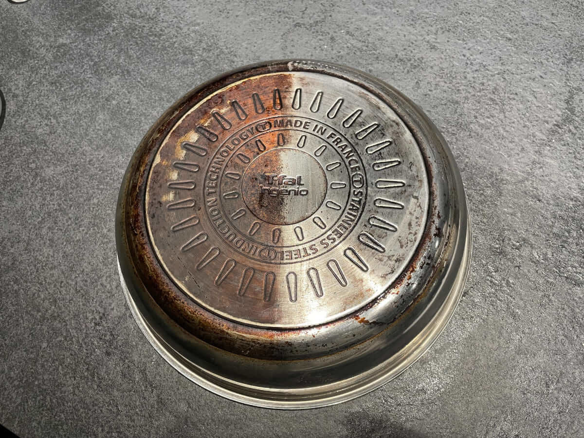 今回は、2年間使用したフライパンの焦げを落としてみました。布で試してみましたが、頑固な汚れには硬いスポンジを使用するのがおすすめです。