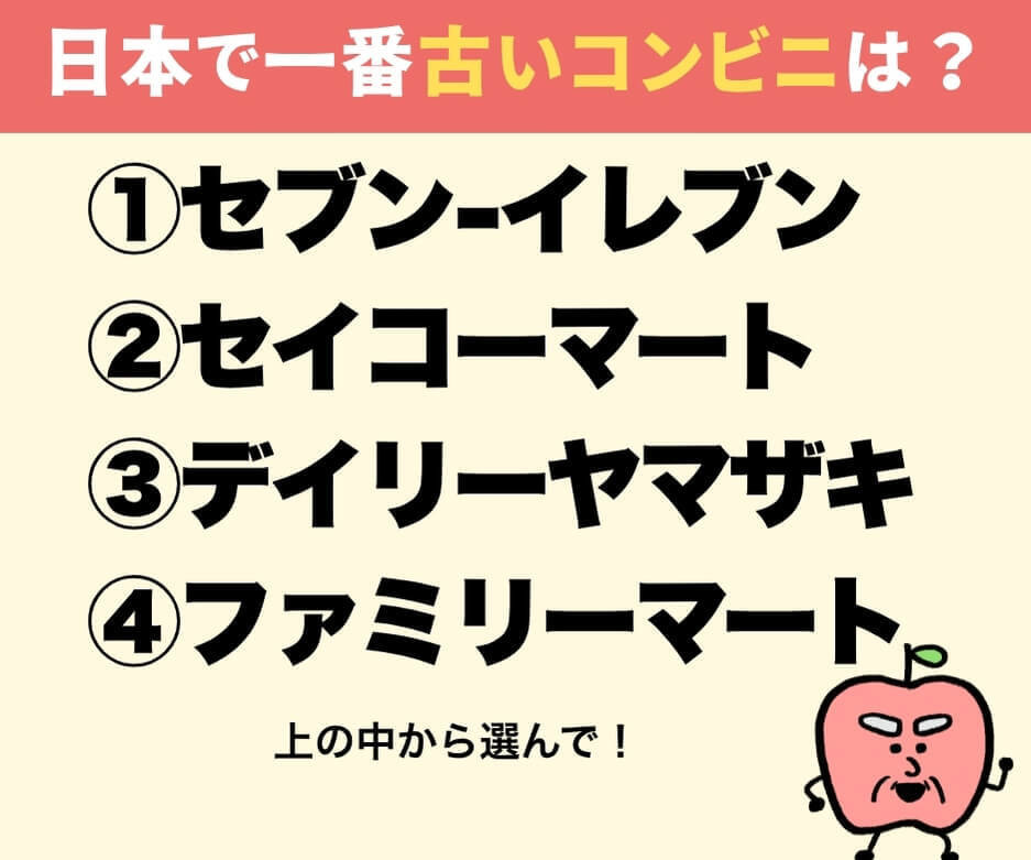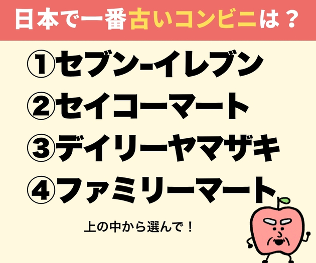 【大人の雑学クイズ】次のうち一番古いコンビニは?【意外と不正解者続出!】