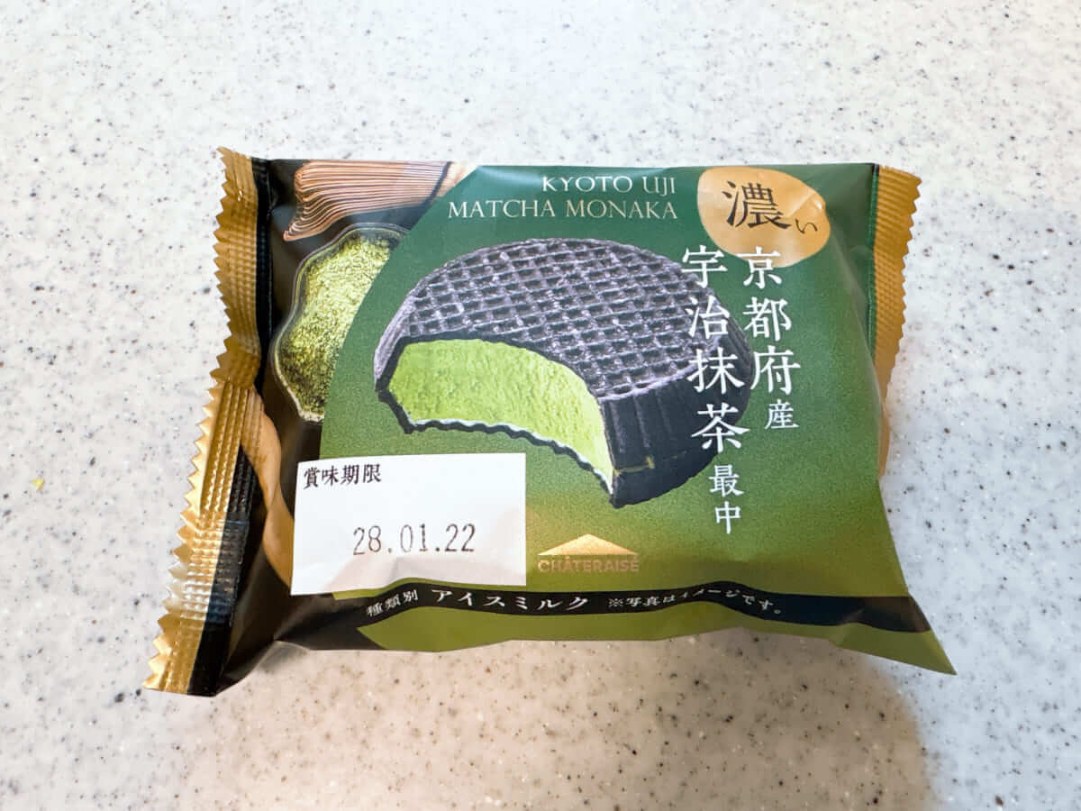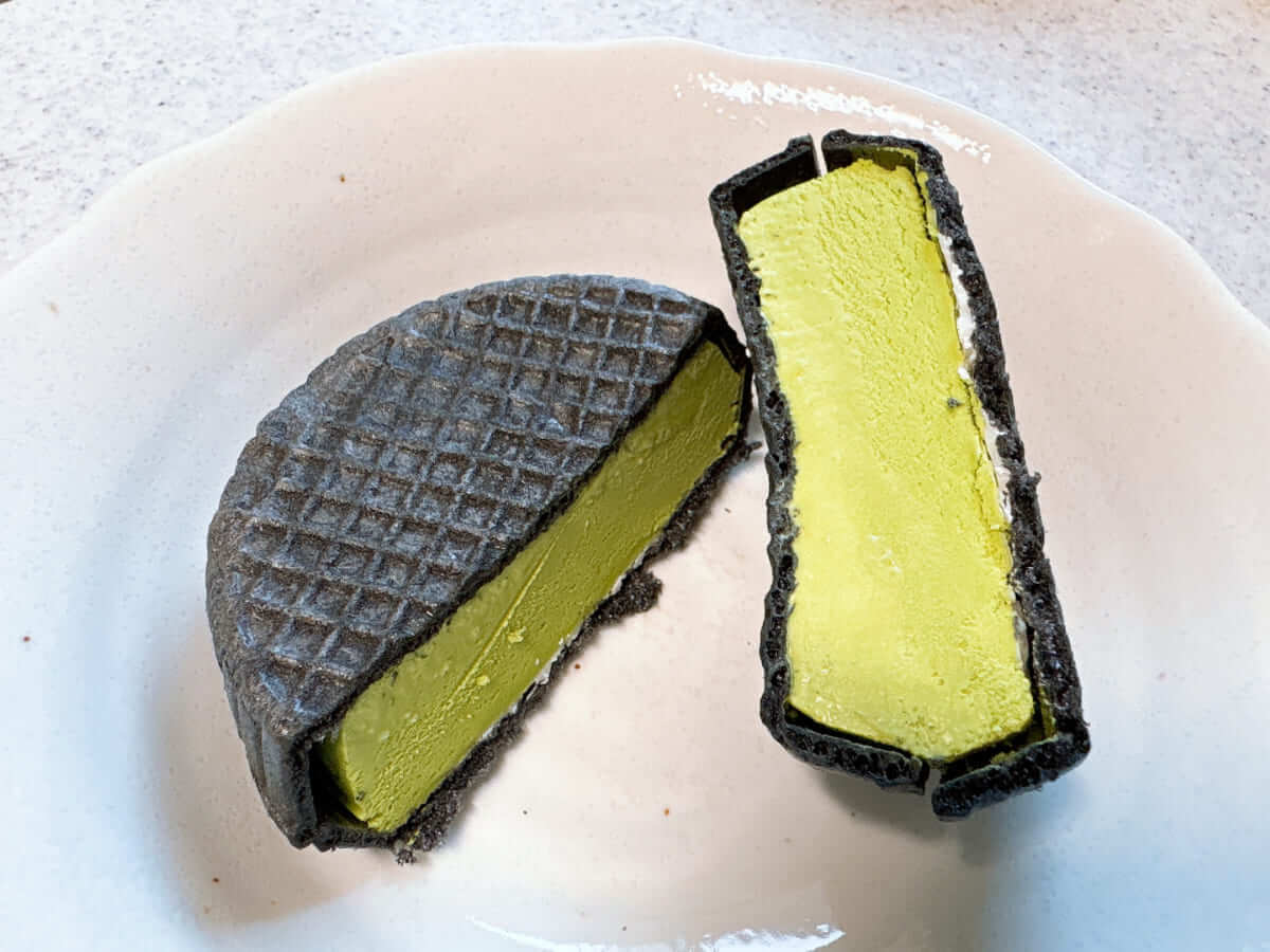 中には濃厚な抹茶アイスとホワイトチョコがサンドされています。