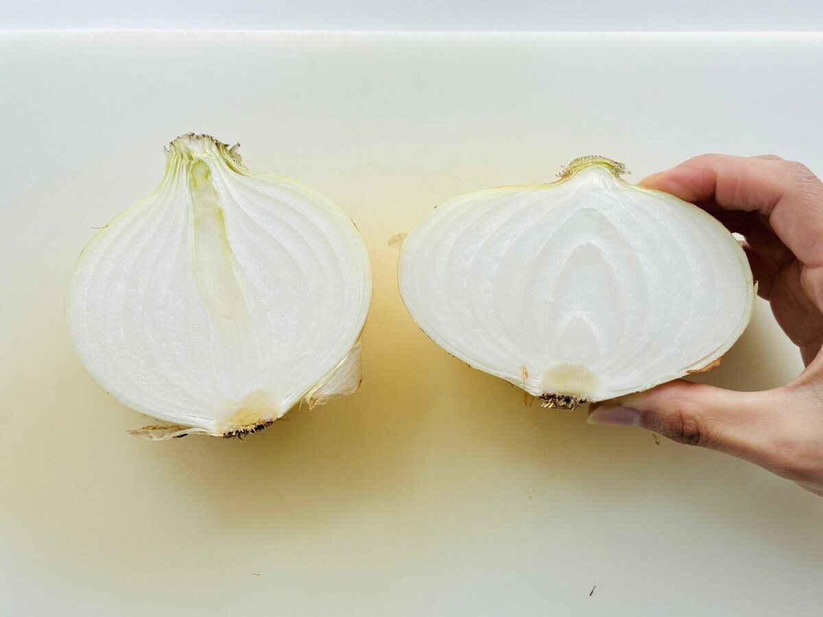 まずは、切って見た目を比べてみました。断面の見た目で、すでに“平たいもの”の方が美味しそうです。