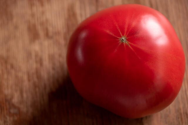 トマトの底(茎の反対側)を見たときに、中心から放射状に白い線が伸びているものは、甘みが強く実が詰まっている証拠です。