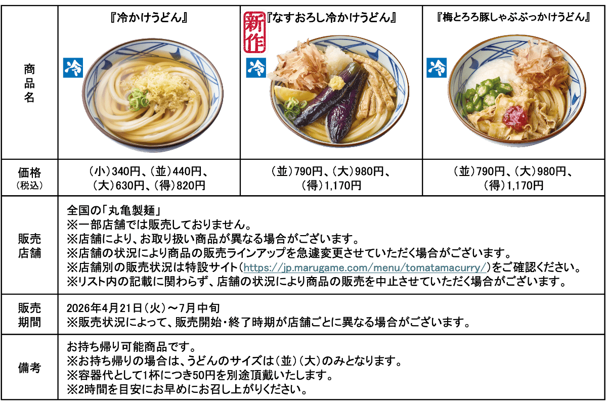 今年は春から気温がグングン上がる予感!ということで、丸亀製麺の夏の風物詩『冷かけうどん』が例年より約1.5か月早い、4月21日(火)から販売されます。