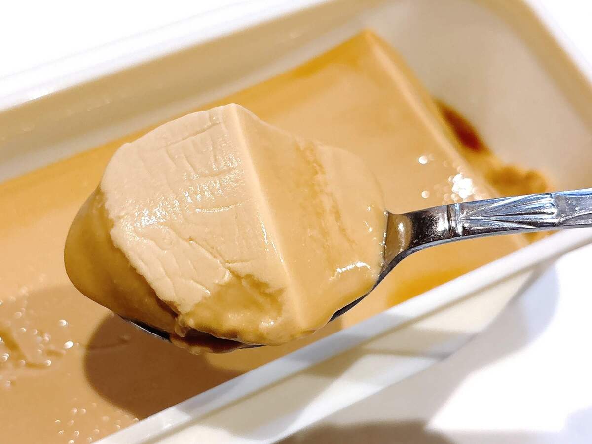 とろけるキャラメルプリンは、名前の通りとろんとしたやわらかい食感が特徴。甘いのかな~と思っていたけれど、キャラメルはほんのり感じる程度で、甘ったるさはそこまでありません。