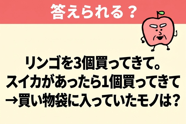 「スーパーでリンゴを3個買ってきて。もしスイカがあったら、1個買ってきて」