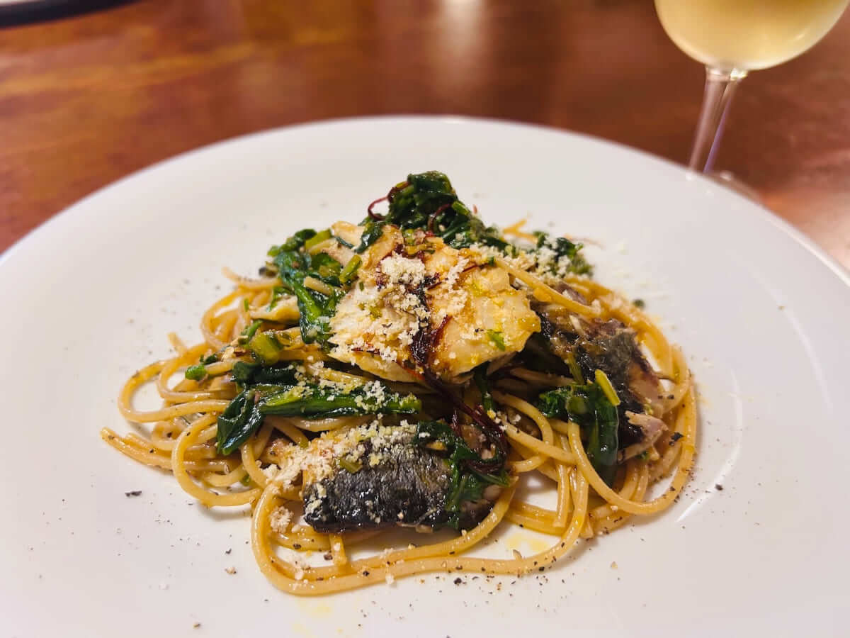 - 食べながら体を整える。全粒粉パスタや春菊の栄養素で、翌朝の体もスッキリ軽く