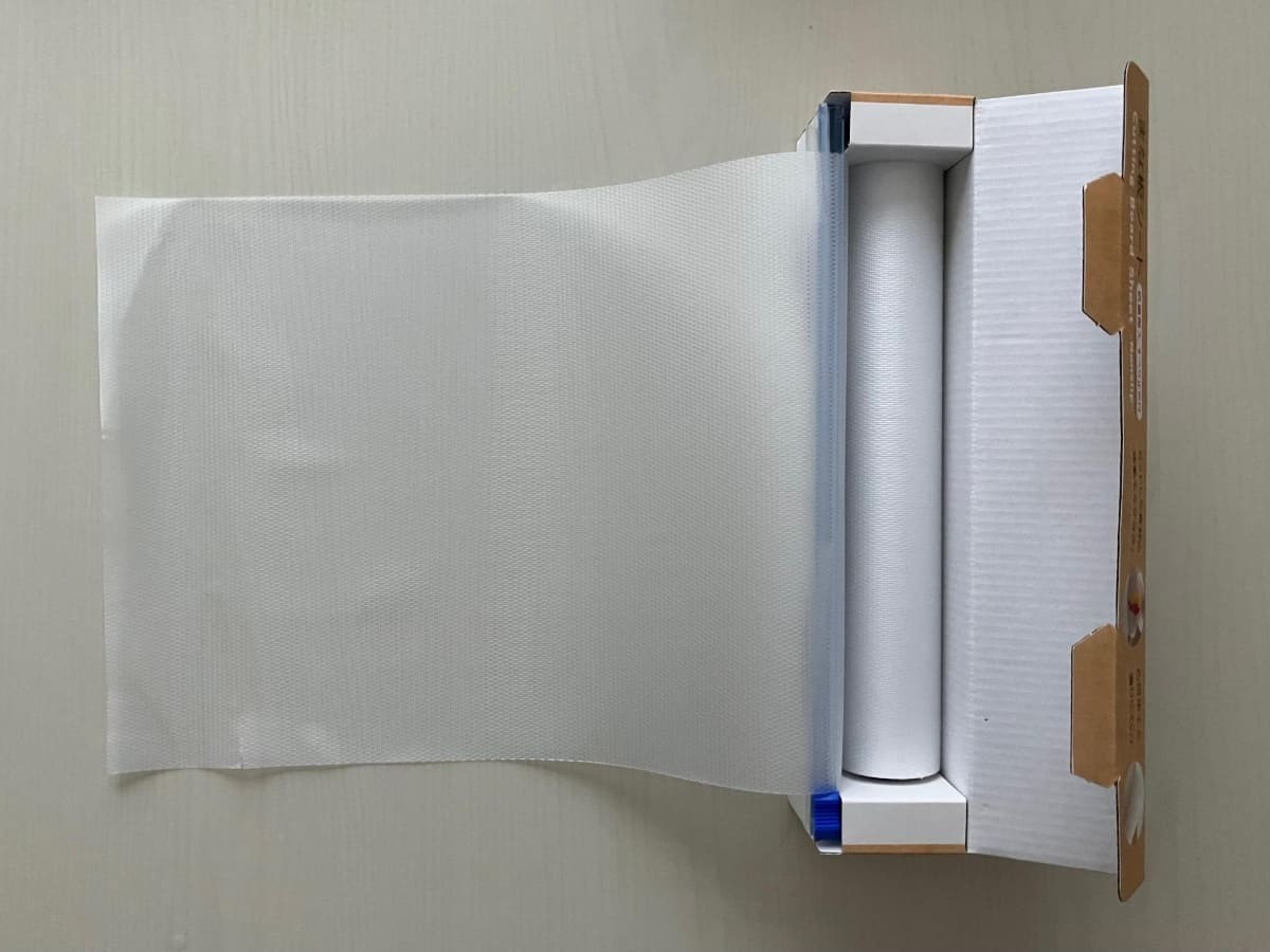 この「まな板シート」なら必要な分だけパッと引き出し、付属のカッターで好きな長さにカットして使うだけ!