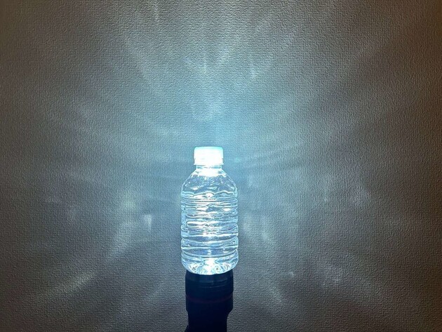 ペットボトルを上に乗せると、確かに灯りが周囲に広がっています。おぉ!確かに先ほどの光り方とは大違いです。