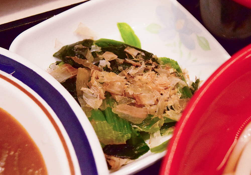 小皿のほうれん草は味付けがされていないため、うどんにそのままトッピングするのがおすすめです。好みによってはカレーに加えても違和感なく楽しめます。さりげなくアレンジの幅がある、自由度の高いセットメニューと言えそうです。