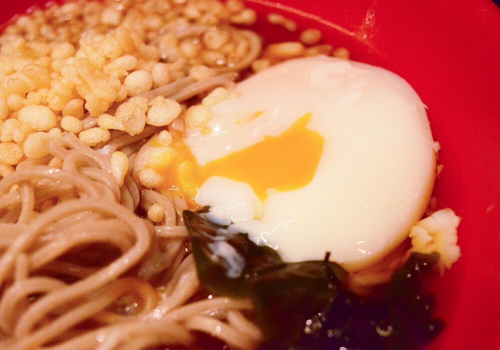 つゆはクセのない無難な味わい。やや濃いめに感じますが、温泉玉子をつゆに混ぜながら食べると、ちょうどよい塩梅になります。