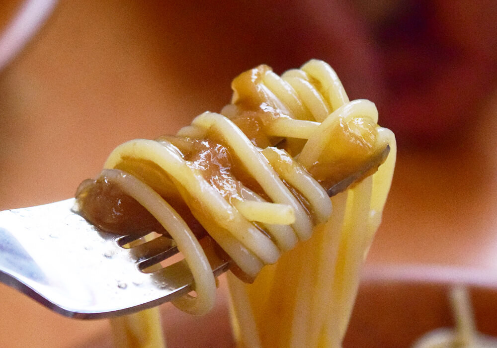 トマトの旨味がより一層引き立ち、トマト系パスタが好きな方には特におすすめの仕上がりに。まるで最初からこうしたスープパスタが存在していたかのように感じられる、完成度の高いアレンジです。
