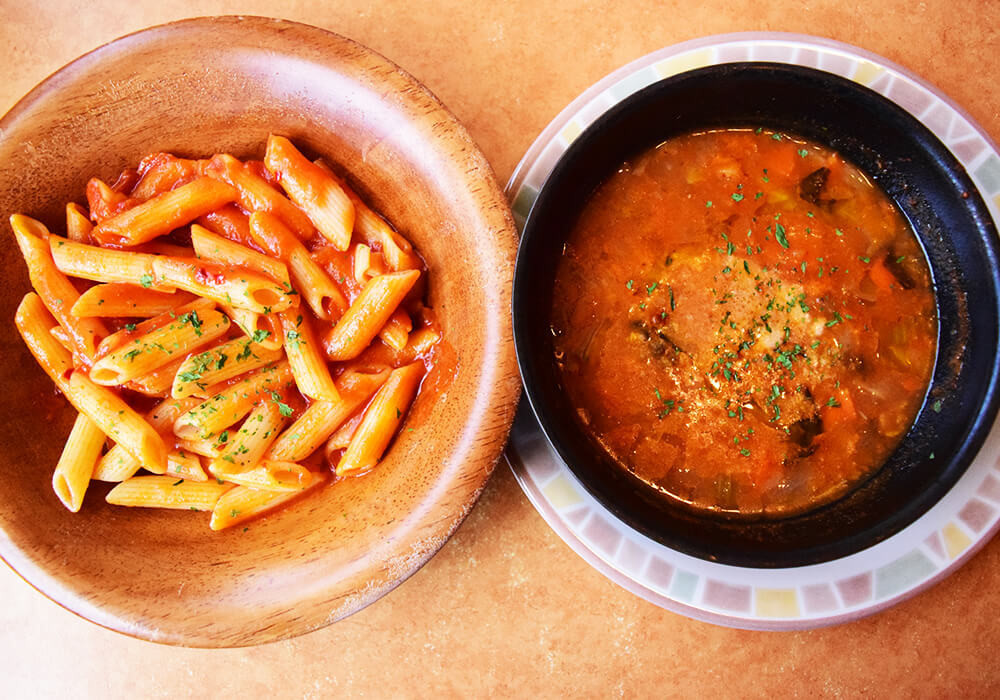 おすすめアレンジ2:「ペンネアラビアータ」×「田舎風ミネストローネ」