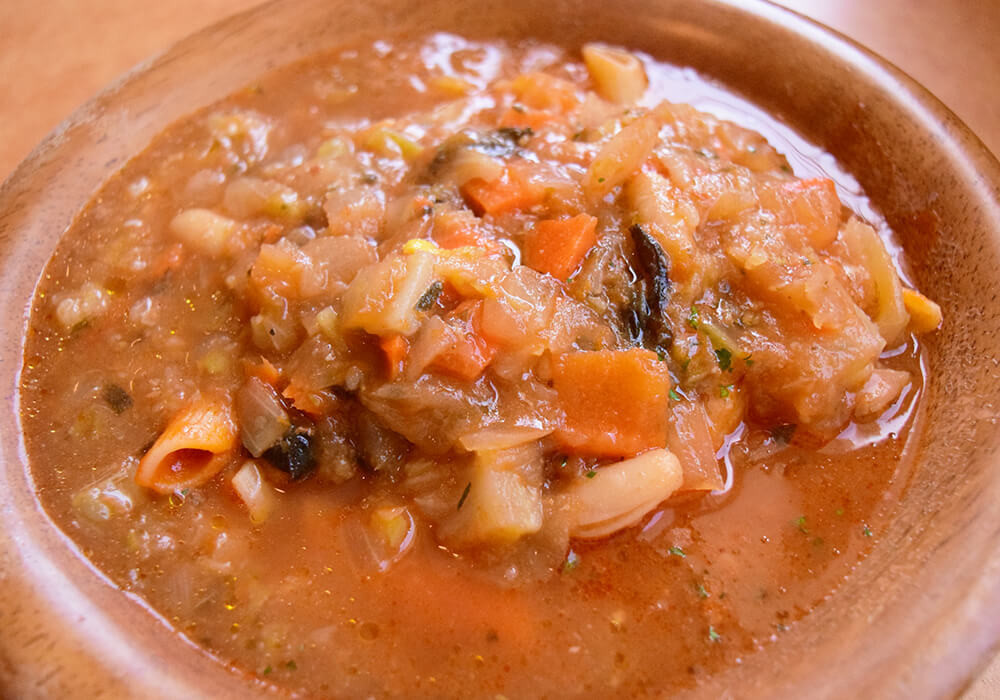 そのペンネアラビアータに田舎風ミネストローネを加えることで、気になっていた「具材の物足りなさ」はしっかり解消されます。