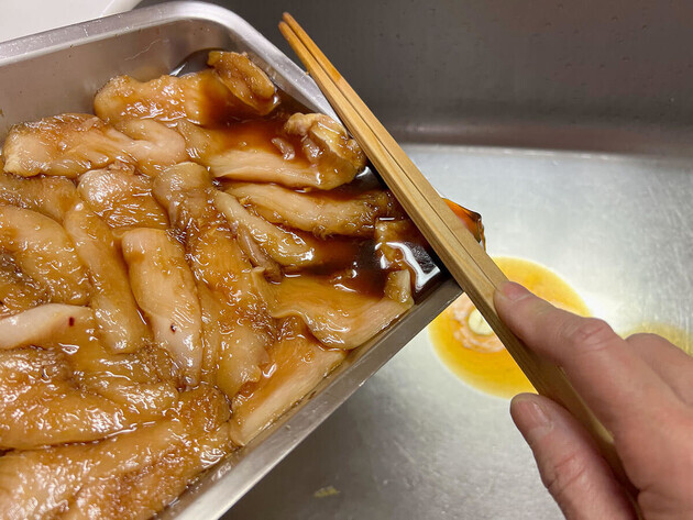 作り方③胸むね肉を漬け込む
