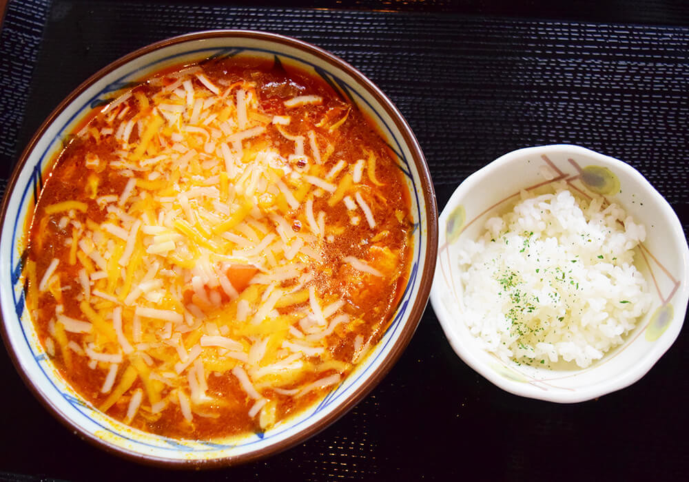 - とろける3種のチーズトマたまカレーうどん(ひと口ごはん付き)