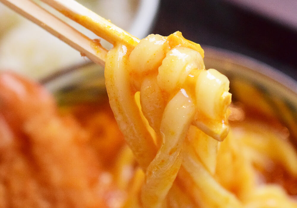 そして、丸亀製麺おなじみのもちもちでコシのあるうどん。トマたまカレーとの相性も悪くはありませんが、その後ごはんと合わせてみたところ「やはりごはんの方が合う」という印象に落ち着きました。