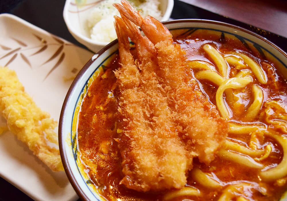 - 海老カツトマたまカレーうどん(ひと口ごはん付き)
