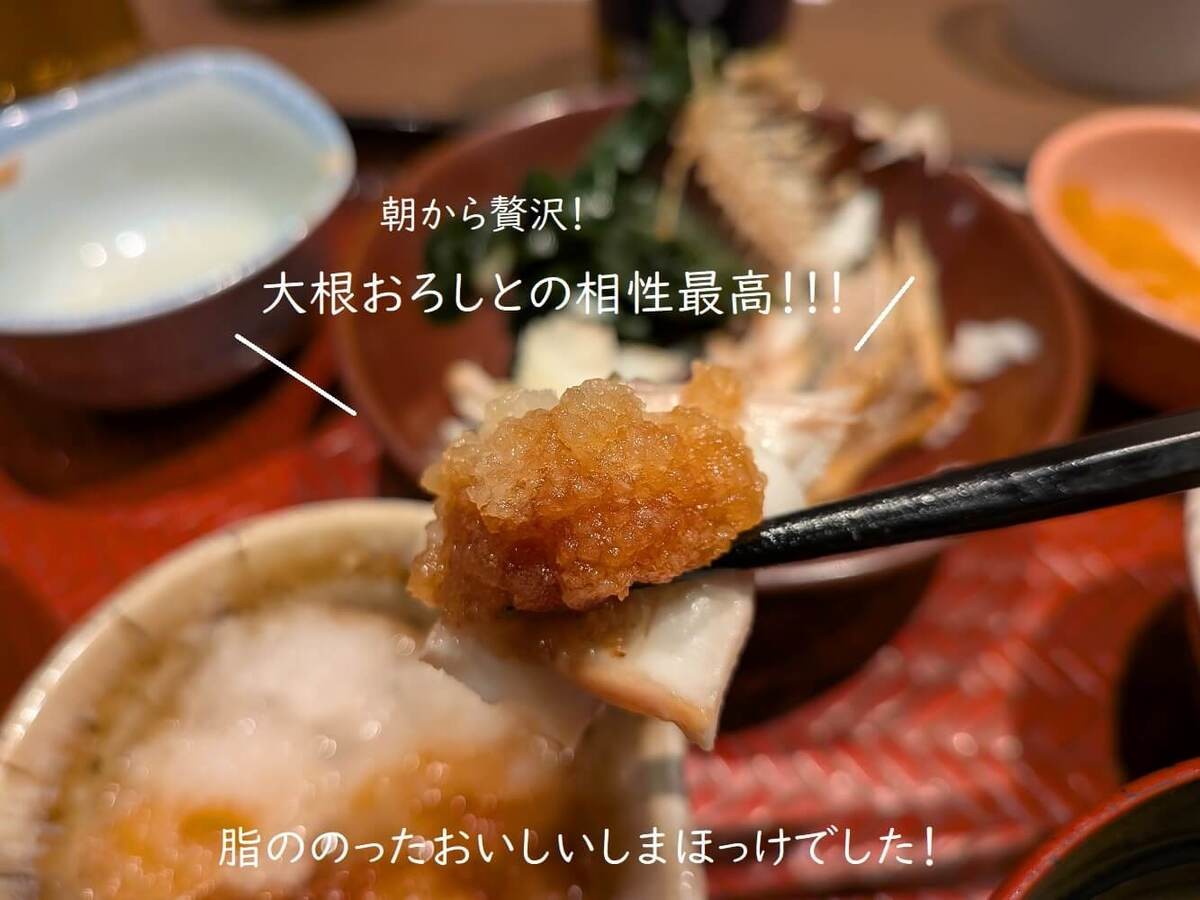 大根おろしもついているので、本当に朝からおいしくお魚が食べられる!!もう天才!