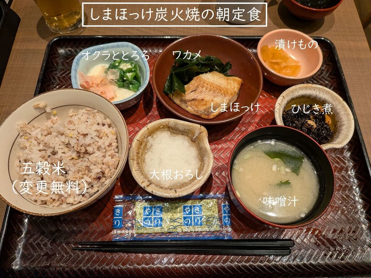 さっそく、筆者は「炭火焼しまほっけ朝定食」を選択しました。ごはんは無料で五穀米に変更しています。