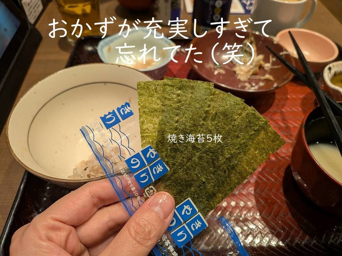 おかずがあまりに充実しているので、すっかり忘れていましたが、焼き海苔も5枚入っていました。