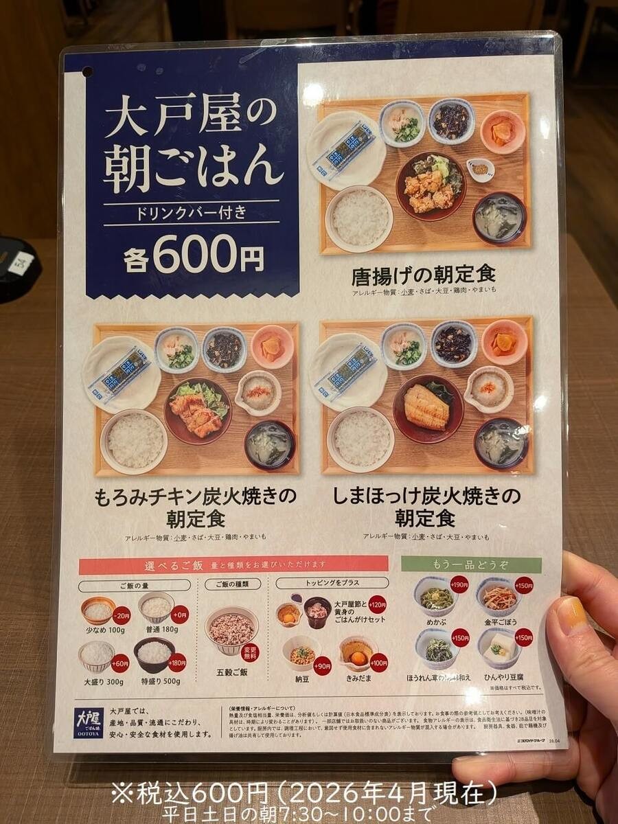【朝定食が食べられる大戸屋】※2026年4月現在