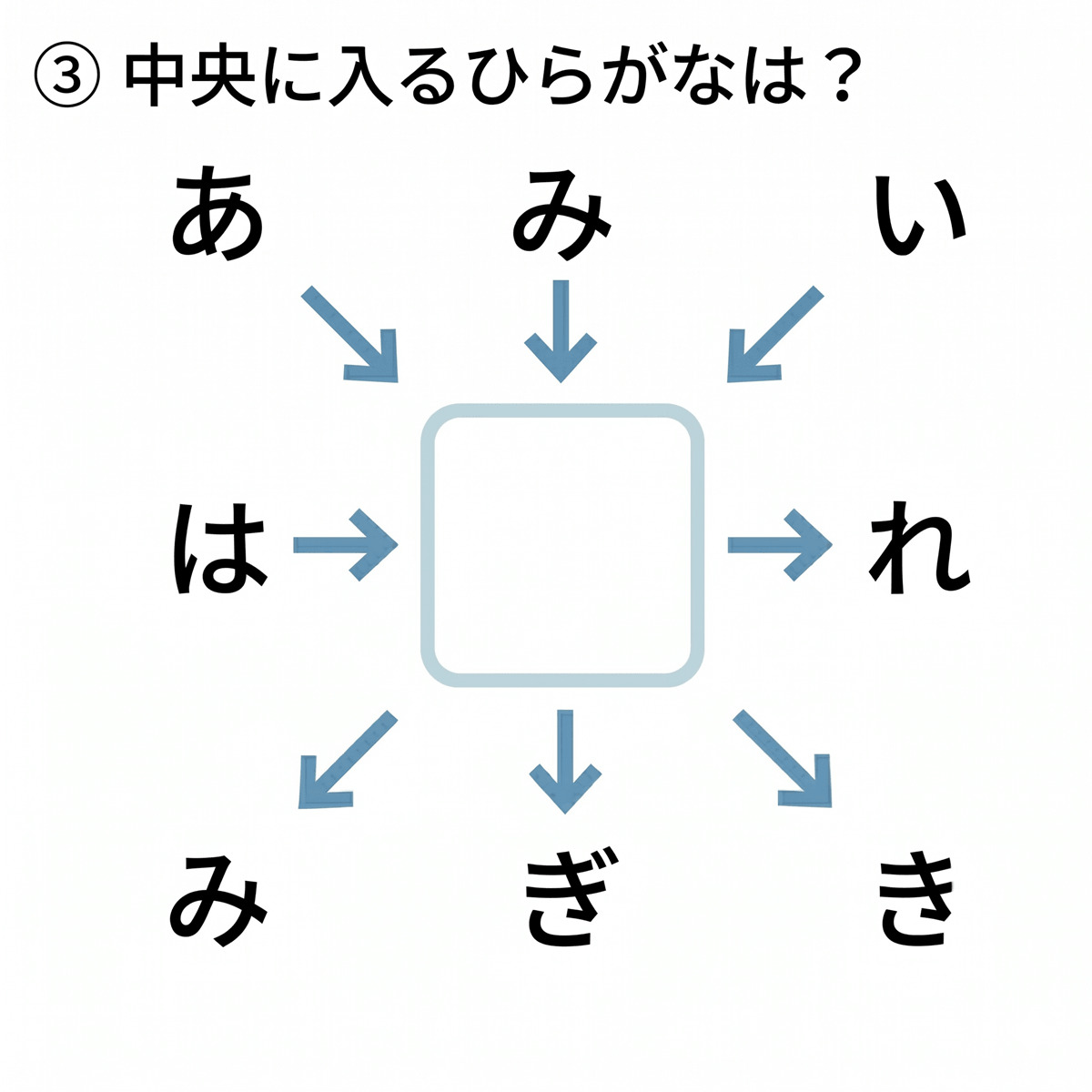 四角の中に入る、ひらがな1文字は?