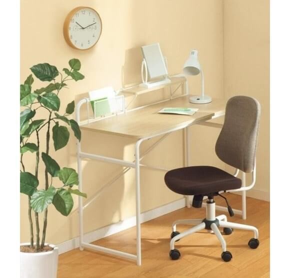 デスクやシェルフの色や素材を、ベースカラーにそろえると統一感が出るのでおすすめです。