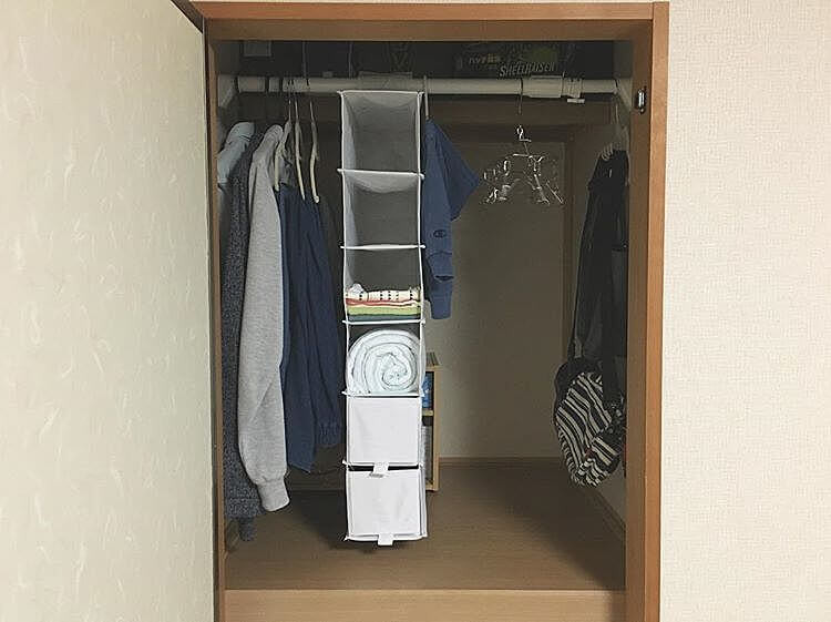 また、押入れの扉を閉めれば、隠せてしまうのも嬉しいところ。扉を外し、カーテンやロールスクリーン、ブラインドでさらに取りやすくしてあげると、片付けのお手伝いも進むかもしれません。