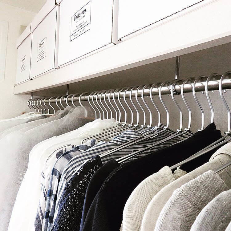 ただし、ギュウギュウに詰め込んでハンガーをかけてしまうと出し入れに苦労するので、適度に間隔を空けて収納するのも大事なポイントです。