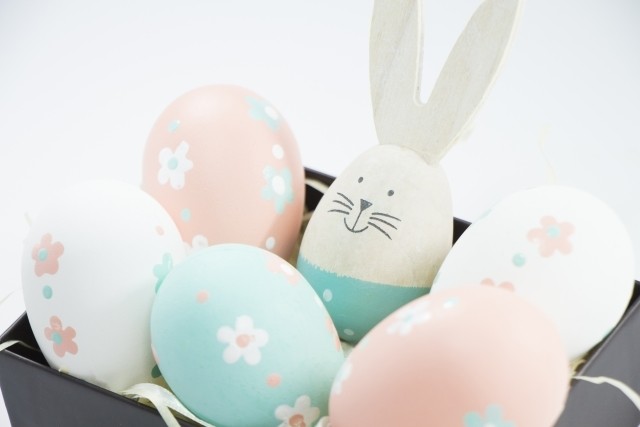 シールを貼ってもいいですし、春らしいポップなカラーでペイントをして楽しむのもイースターの醍醐味です。