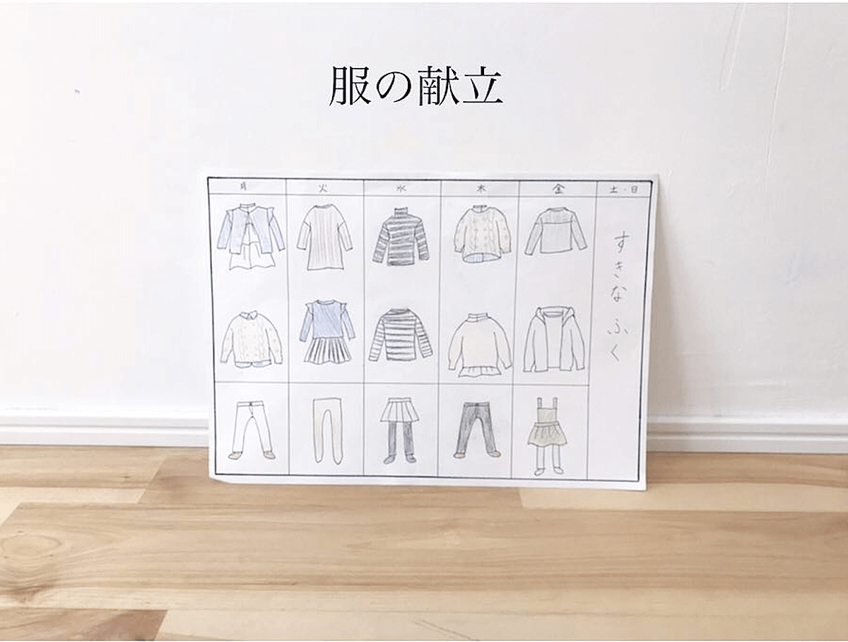 毎朝服を選ぶ手間を省くために、@yui___lifeさんが作ったのは"服の献立表"。