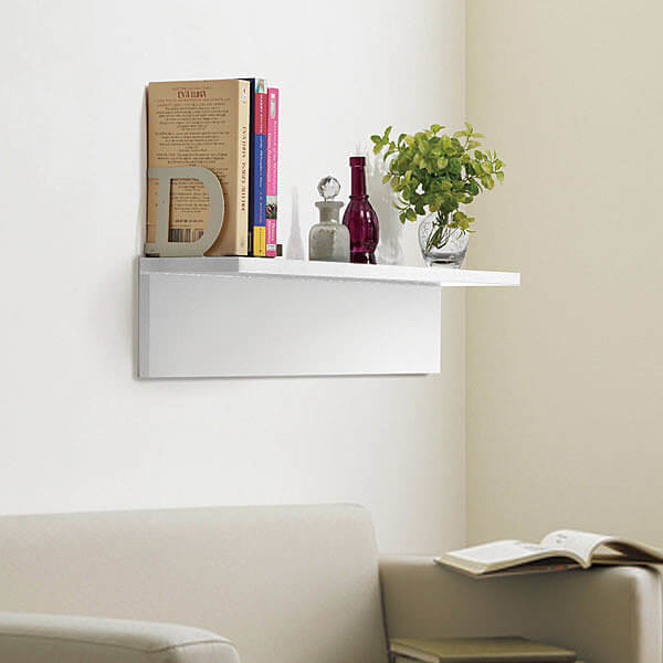 収納するものが少ない場合や、飾り棚として使用したい場合には、L型ウォールシェルフがおすすめです。ブラウン、ホワイトのカラーバリエーションがあり、部屋のインテリアに合わせて選べます。