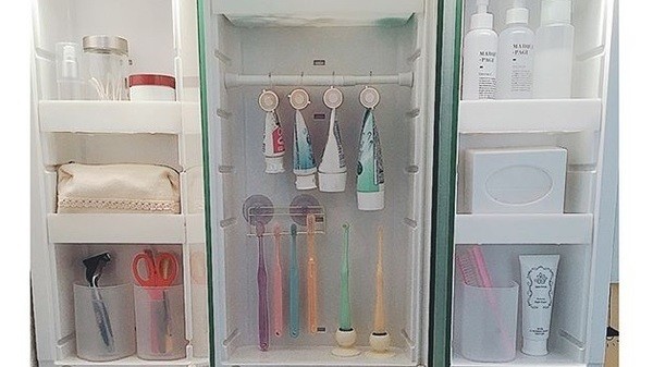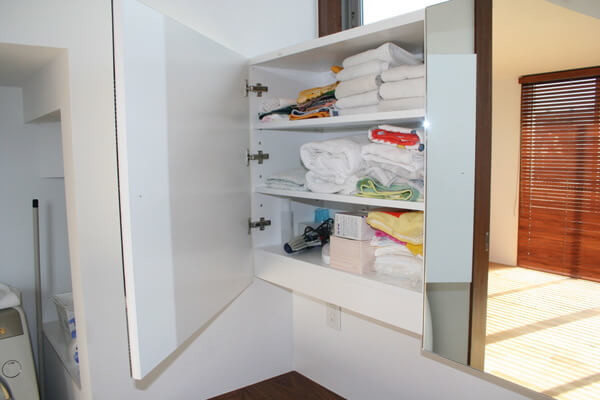 洗面台を使用していると意外と気になるのが、洗面台の鏡裏にある収納スペース。