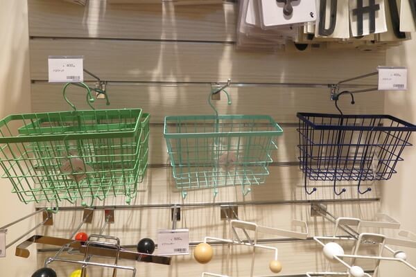取材中、売り場で気になって紹介してもらったのが、ハンガータイプのバスケット400円(税抜き)。