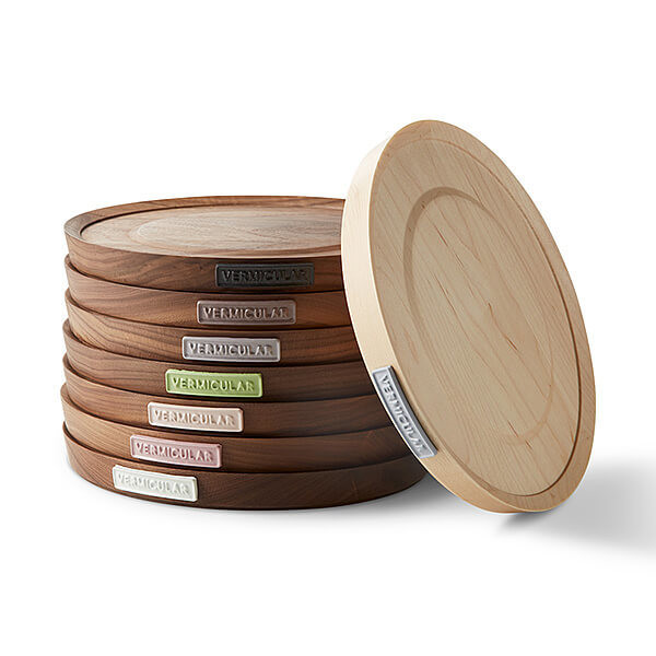 鍋底のラインに合わせて、職人が丁寧に削って作る木の鍋敷きです。鍋のサイズに合わせて4種類の大きさがあります。色はホワイトハードメープルとブラックウォールナットの2種類です。