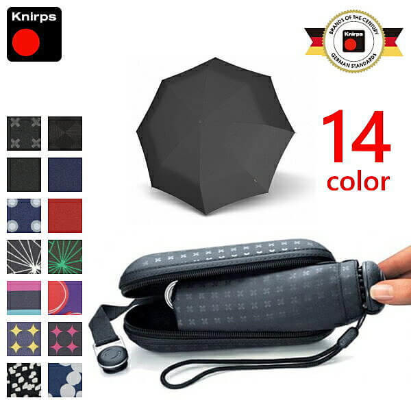 ラウンド型のスタイリッシュなケースに収まる、コンパクトサイズの折り畳み傘。ケースは速乾性に優れた素材を使っていて、濡れた傘の持ち運びも安心です。