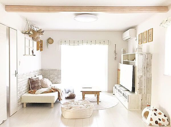 お部屋のベースは白でナチュラルな木目の物や木目の家具などを取り入れることで、ナチュラルインテリアに近づきます♡