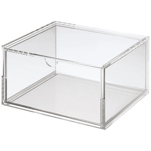 『重なるアクリルケース』は、さまざまな収納量に対応できる優れものです。深さがあるタイプを選ぶと、小さなものも大きめなものもどちらも収納できます。