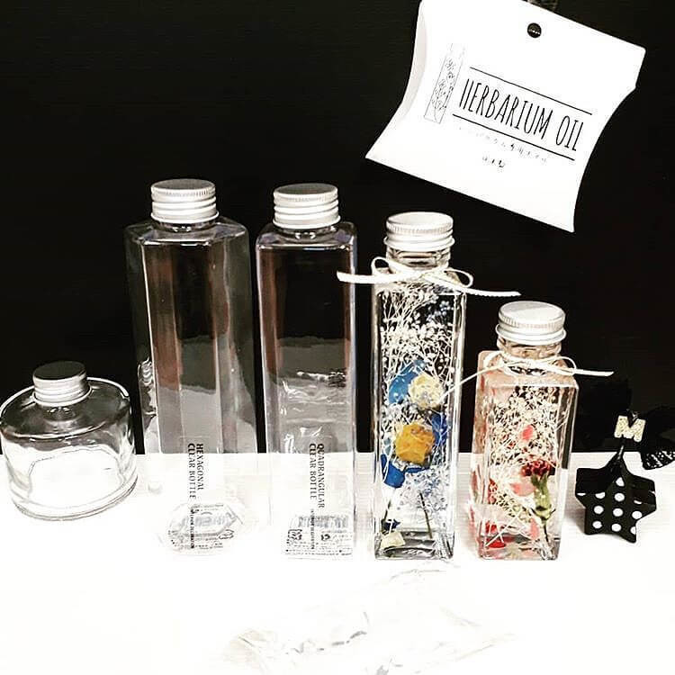 軽くて割れにくいので、扱いやすいと評判です。よりハーバリウムらしい細長いタイプも販売中。