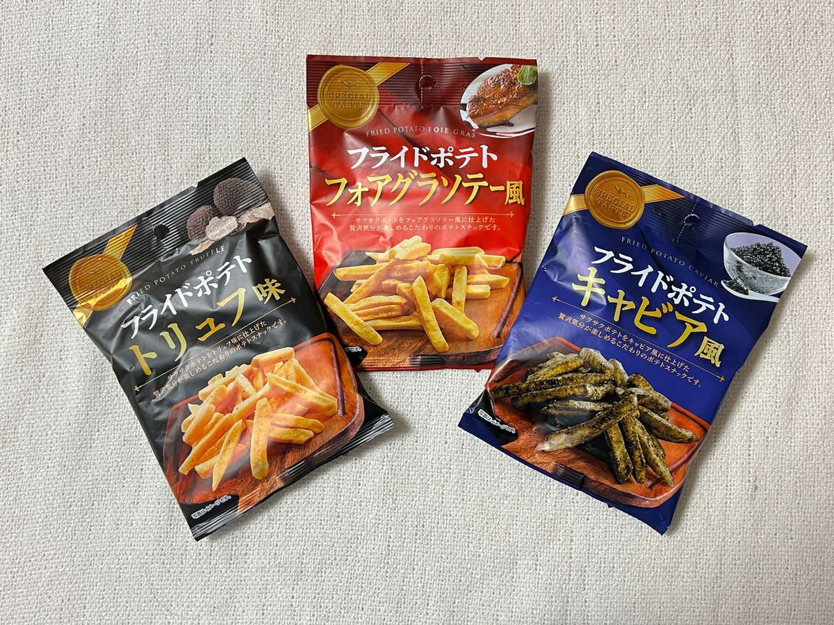高級感のあるパッケージのこちらのスナックは、なんと世界三大珍味であるトリュフ・フォアグラ・キャビア風味のポテトスナック。